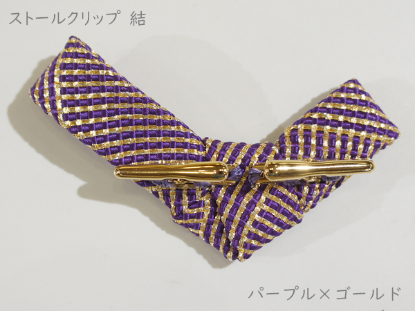 ストールクリップ 結 パープル×ゴールド